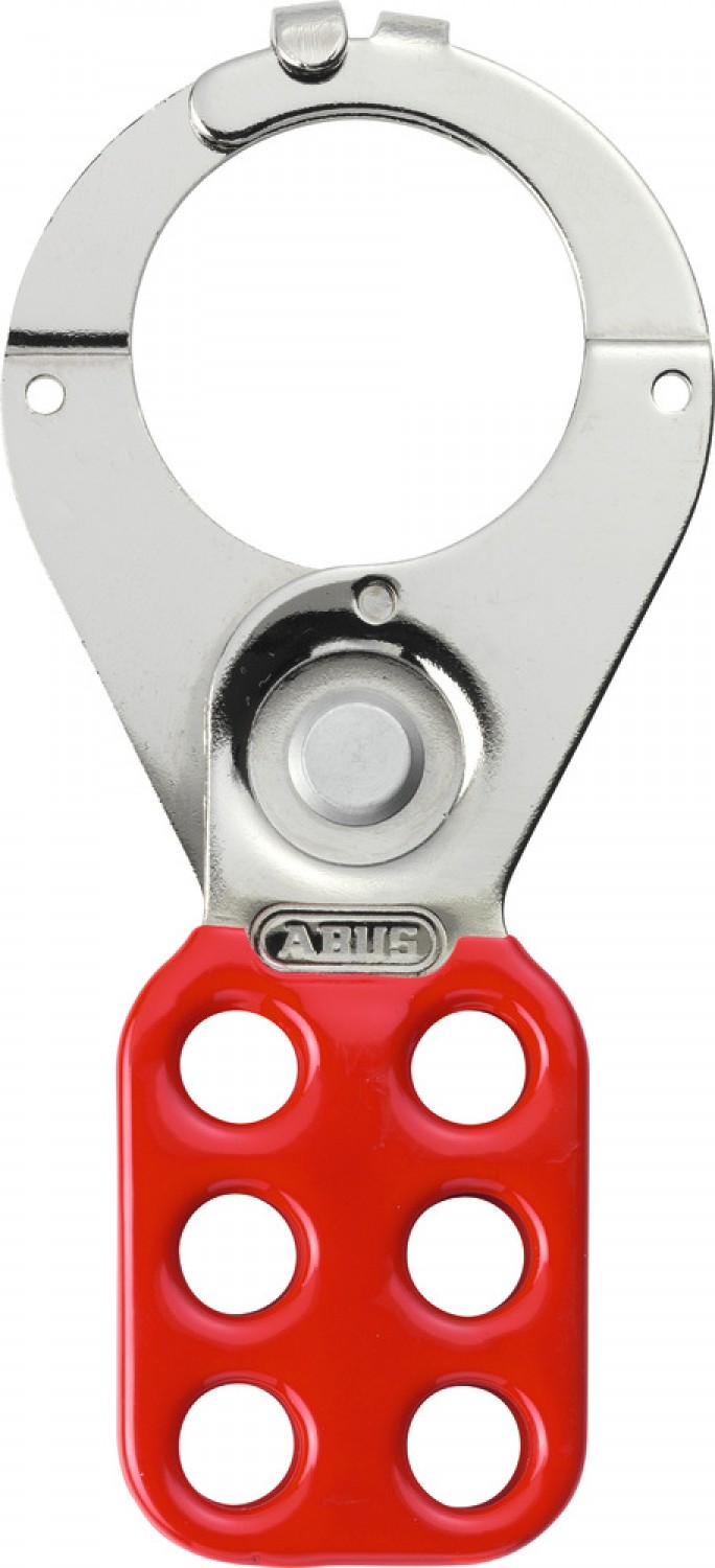 Aldaba de Acero utilizada en el proceso de Bloqueo y Etiquetado para bloquear simultáneamente un dispositivo por más de un candado.
