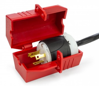 Dispositivo de bloqueo para enchufes. Mantiene encerrado el enchufe para evitar su conexión.
