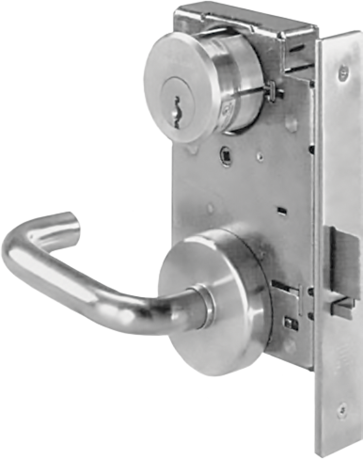 Una cerradura de embutir extra resistente para puertas abatibles en celdas de mínima/mediana seguridad o áreas públicas de instalaciones de detención.