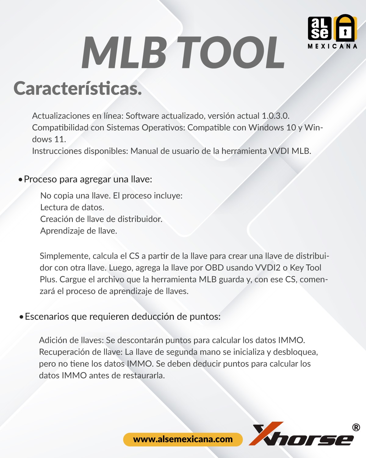 - Uso Eficiente: No se requieren puntos al usar la llave especializada VVDI MLB.